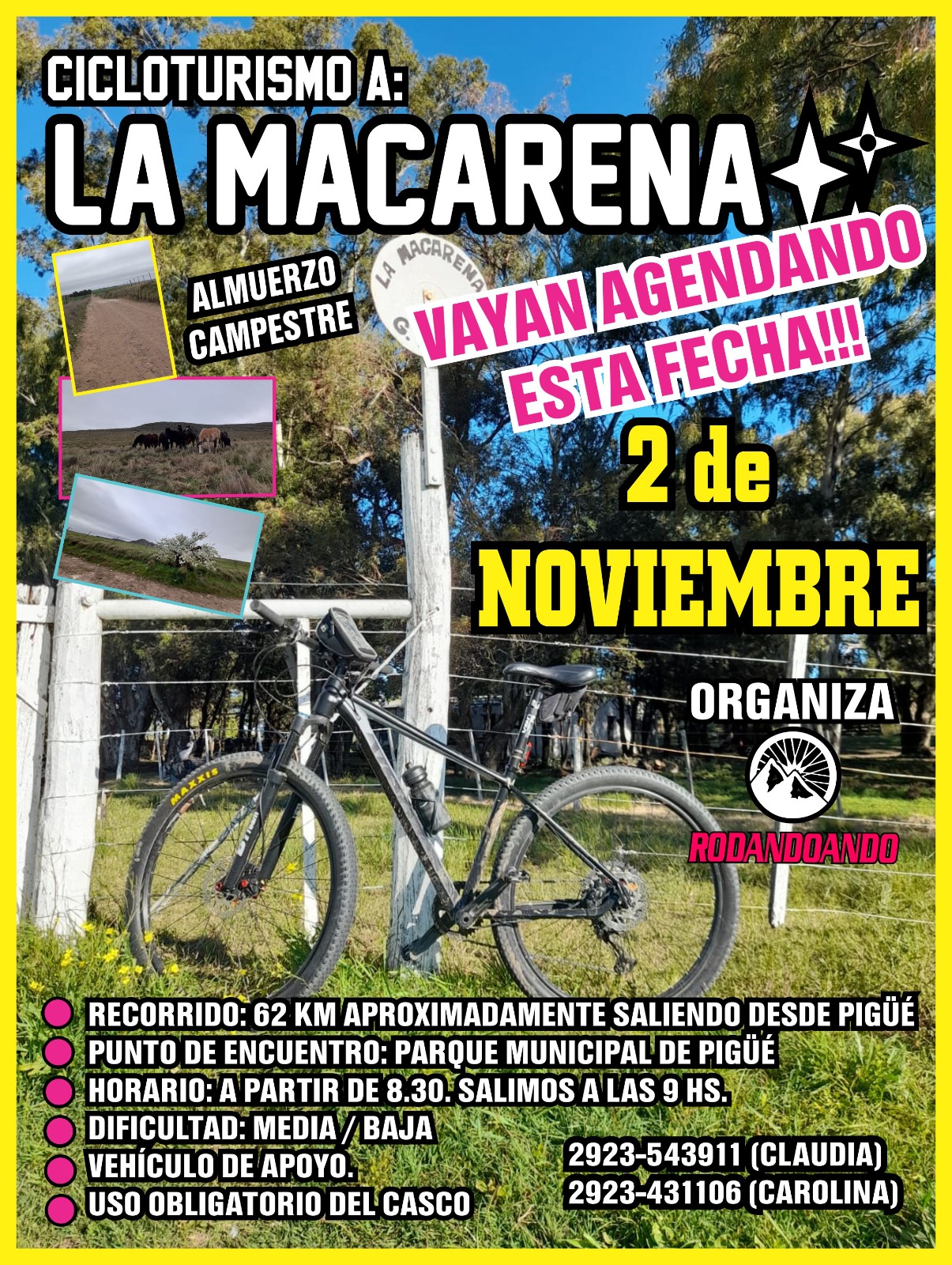 Vayan agendando esta nueva propuesta organizada por la agrupación Rodando Ando de Pigüé 🚲 No te pierdas la oportunidad de pasar un día al aire libre y disfrutar de un almuerzo campestre 🍽