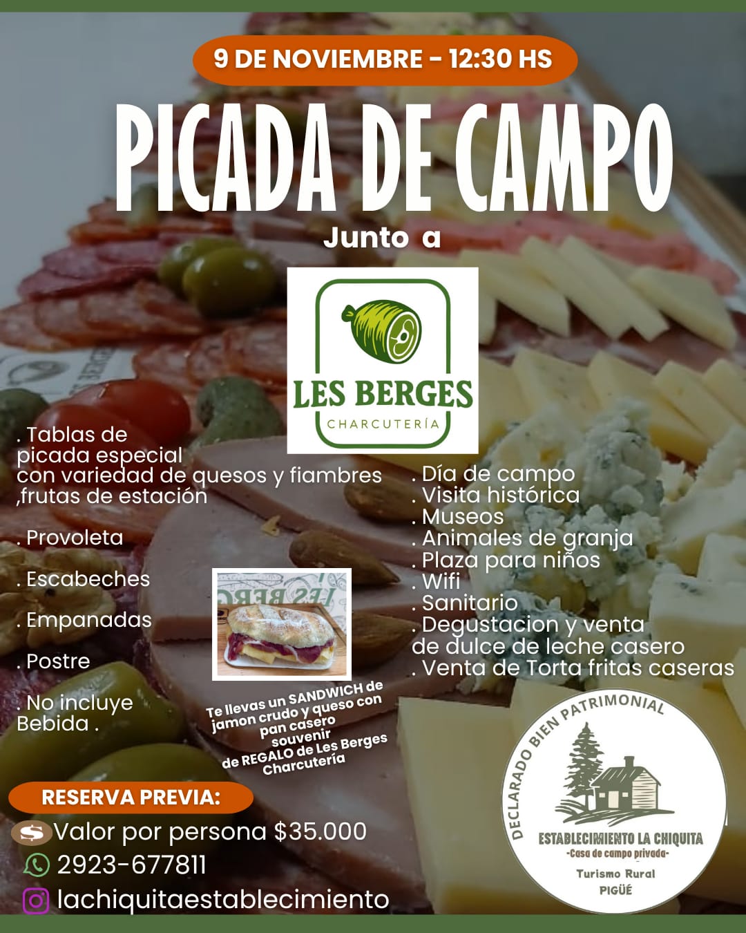 En esta oportunidad, además del disfrutar de un entorno natural único, también te ofrecemos una picada de campo de excelente calidad. 👉Sumate a este día de campo junto a tu familia y amigos!! 📳 Hace tu reserva