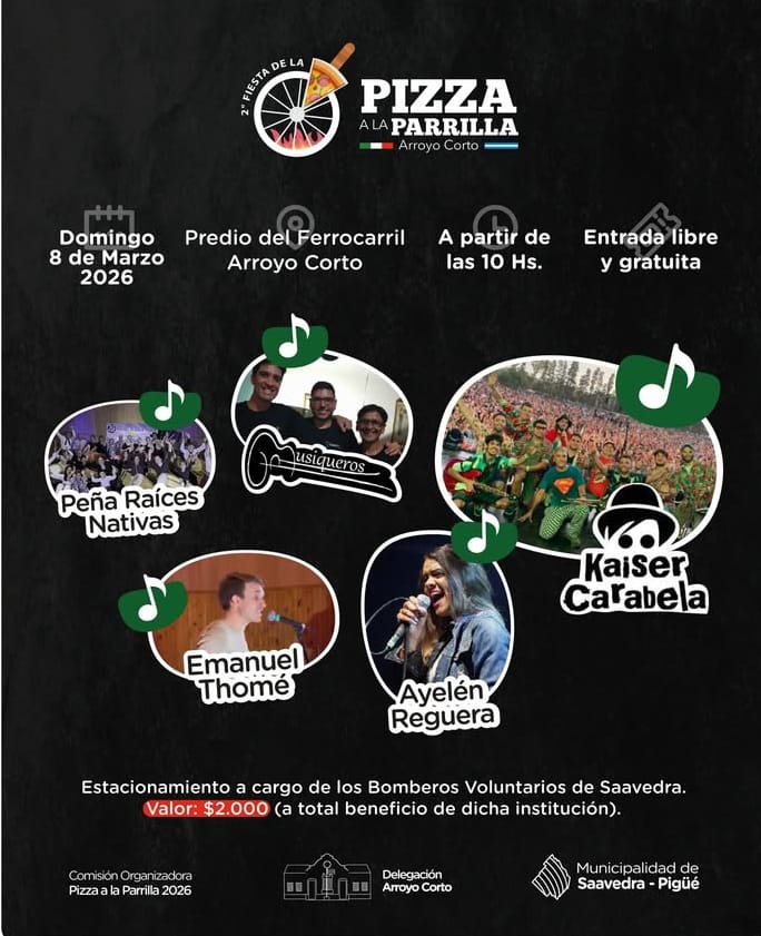 🍕🔥¡Se viene la 2° Fiesta de la Pizza a la Parrilla en Arroyo Corto!! Una jornada para disfrutar en familia con todo el sabor, la música y la tradición. 📆Domingo 8 de marzo. 📍 Predio del ferrocarril - Arroyo Corto 🕙Desde las 10 hs 🎫Entrada libre y gratuita 👉Vení a compartir una experiencia llena de […]