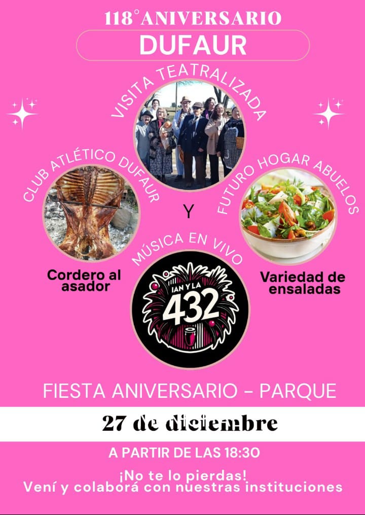 En el lugar venderán porciones de cordero al asador a cargo del Club Atlético Dufaur y variedad de ensaladas elaboradas elaboradas por integrantes del Proyecto del Futuro Hogar de Abuelos.