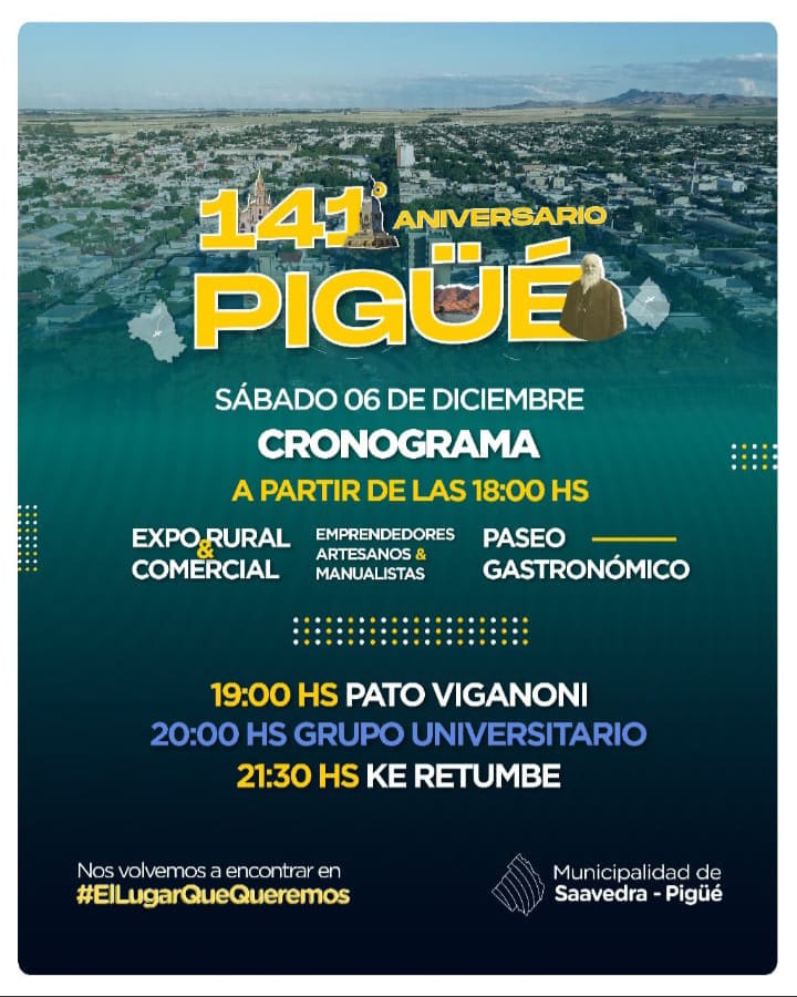 Te esperamos para vivir un fin de semana especial en el Aniversario de la ciudad de Pigüé y la Fiesta de la Omelette Gigante.