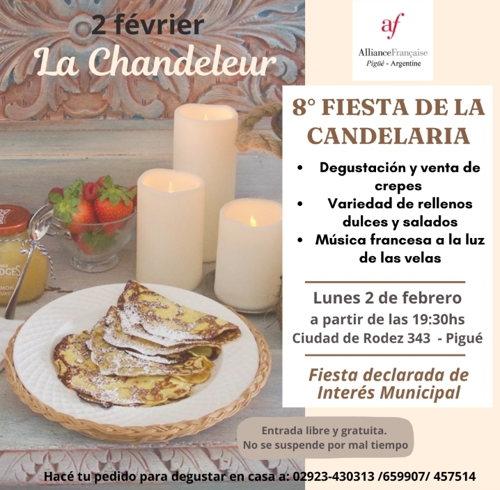 Actividad que refleja parte de la identidad gastronómica heredada de Francia donde se degustan y comparten distintas opciones de crepes. Otro aderezo tradicional de la velada es la música francesa en vivo a la luz de las velas