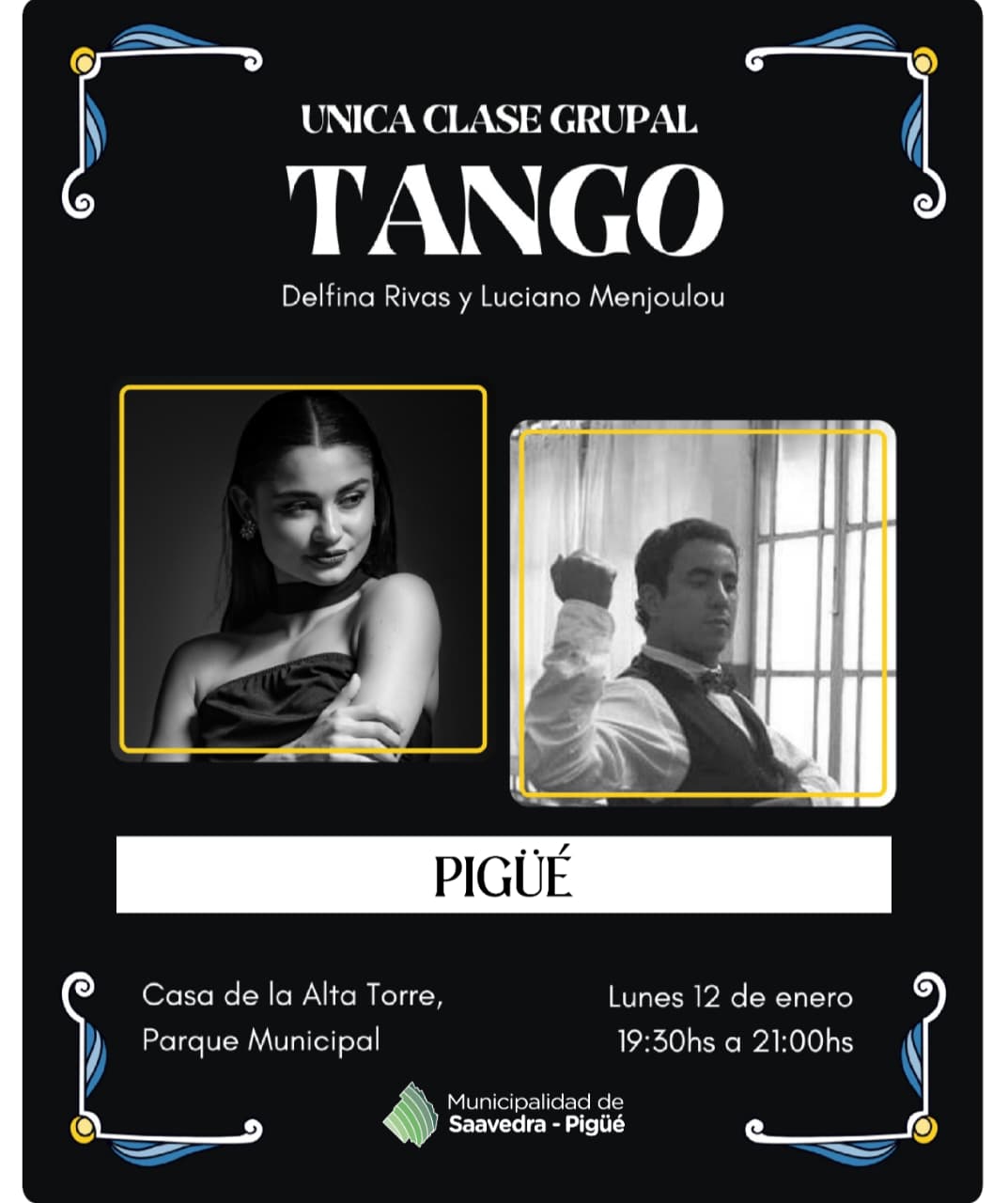 Podés disfrutar de una clase grupal de tango con la participación de Delfina Rivas y Luciano Menjoulou.