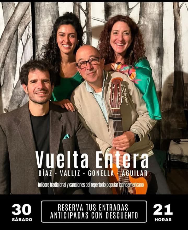 Por primera vez en nuestro ciclo Crear en Concierto se presenta VUELTA ENTERA, un grupo de folclore tradicional, integrado por cuatro músicos de Coronel Suárez, que desde hace una año comparten un recorrido musical en conjunto.