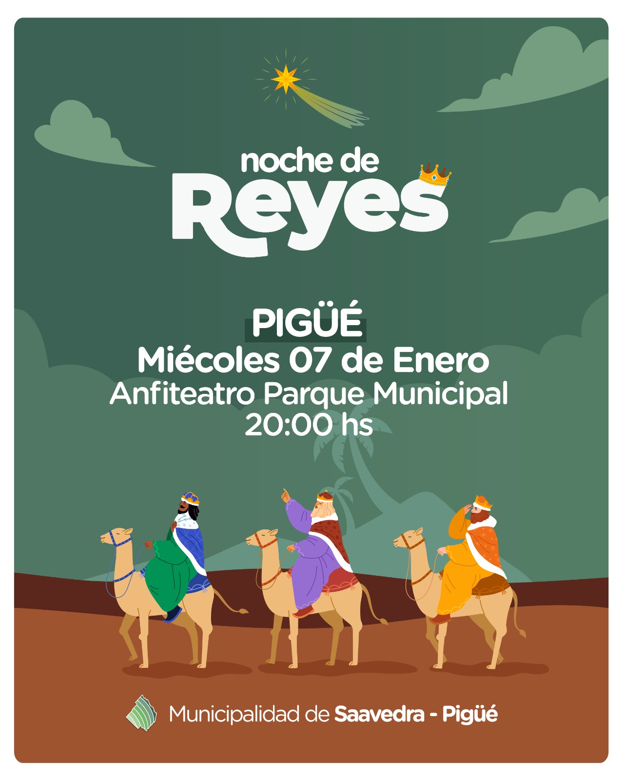Nos encontramos para la venida de los Reyes Magos la noche del 7 de Enero en el anfiteatro del parque municipal. Te esperamos para disfrutar de ese momento mágico.
