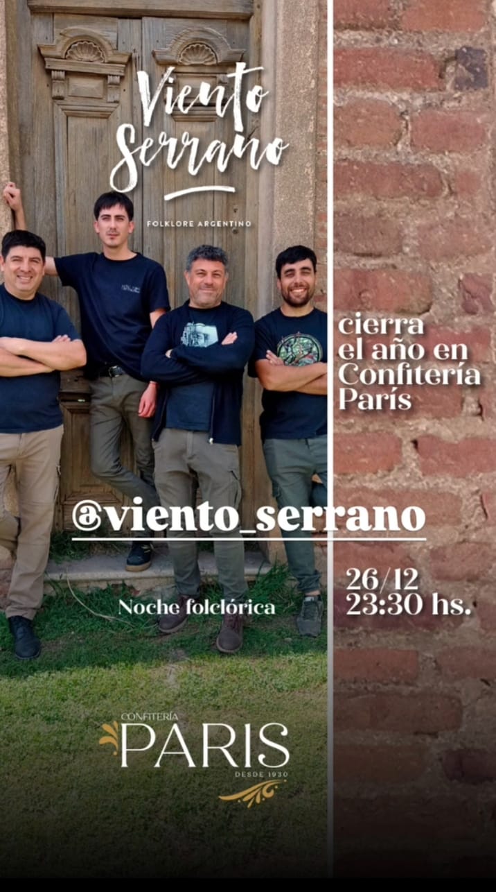 Este viernes 26 de diciembre, recibimos nuevamente a Viento Serrano, que vuelve a Confitería París para cerrar su año.